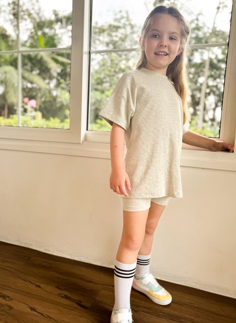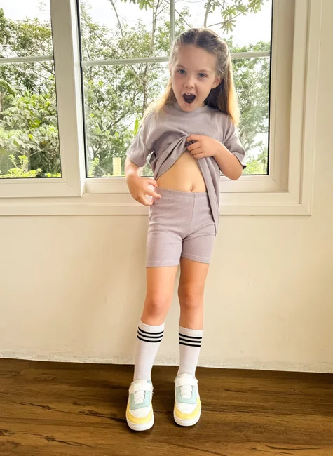 Bermuda biker infantil unissex em ribana canelada de algodão, super macia e maleável. Ideal para qualquer ocasião, mantendo conforto para as crianças serem crianças.